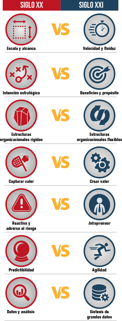 Son incontables los paradigmas de gestión que el siglo pasado nos ha heredado, no obstante, he aquí siete de ellos que se deben cambiar si es que las empresas quieren mantenerse vigentes en el siglo XXI:
